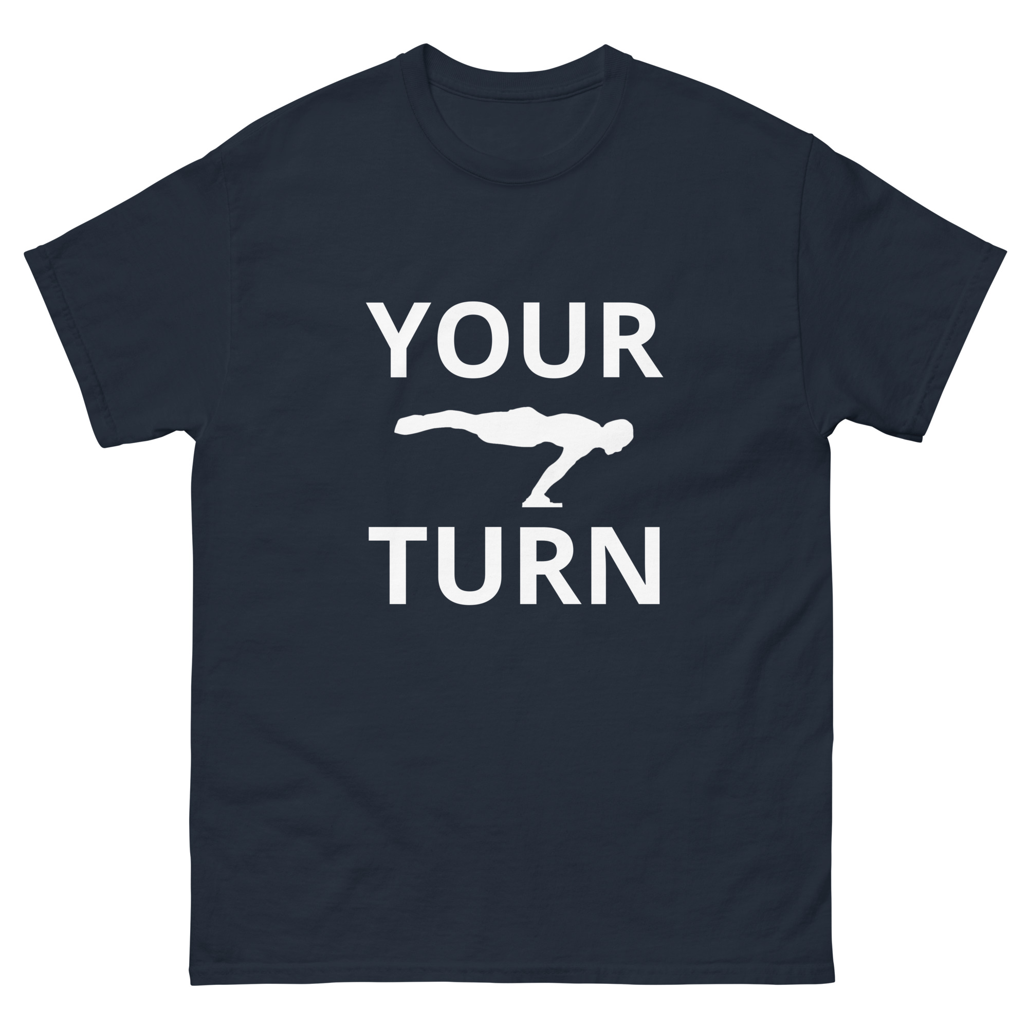 This t-shirt is made especially for you as soon as you place an order, which is why it takes us a bit longer to deliver it to you. Making products on demand instead of in bulk helps reduce overproduction and allows us to do our part in minimizing waste. So, thank you for making thoughtful purchasing decisions! When you’re wearing this t-shirt, let someone know it’s their turn to hop on the bars and do some reps.